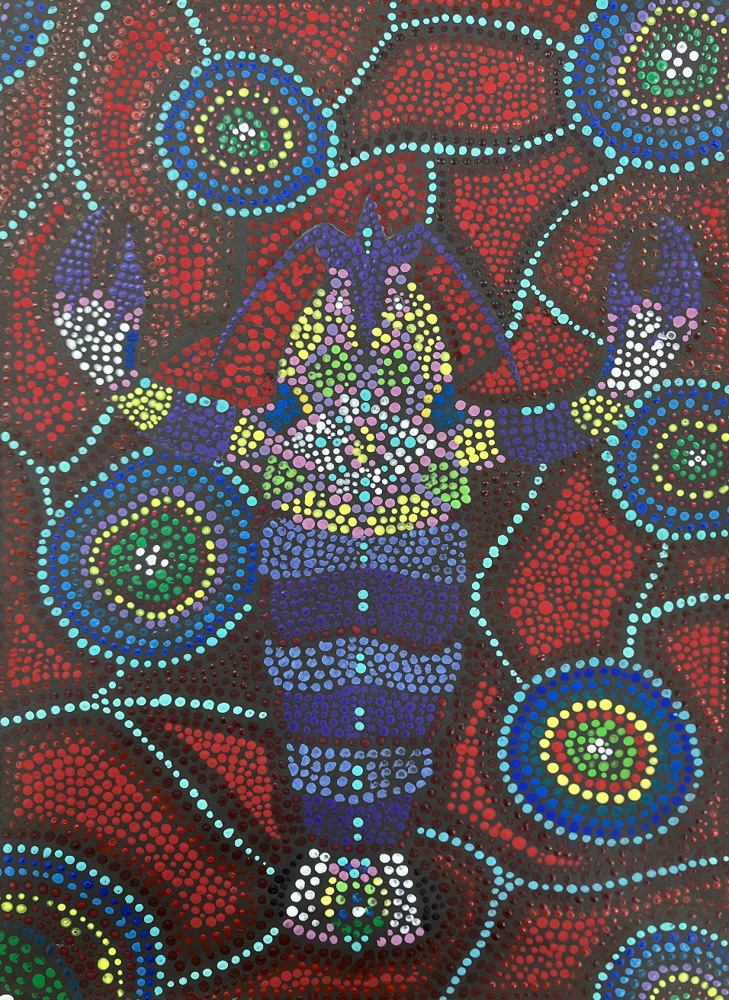 ARTIST STATEMENT: This artwork describes the Antarctic krill fleeing their iceberg habitat that’s melting underwater. Antarctic krill are known as a keystone species because of their wide food chain, which many marine animals (including us) eat in the Antarctic Ocean. However, their numbers are decreasing because of sea ice loss, which causes them to lose their habitat.