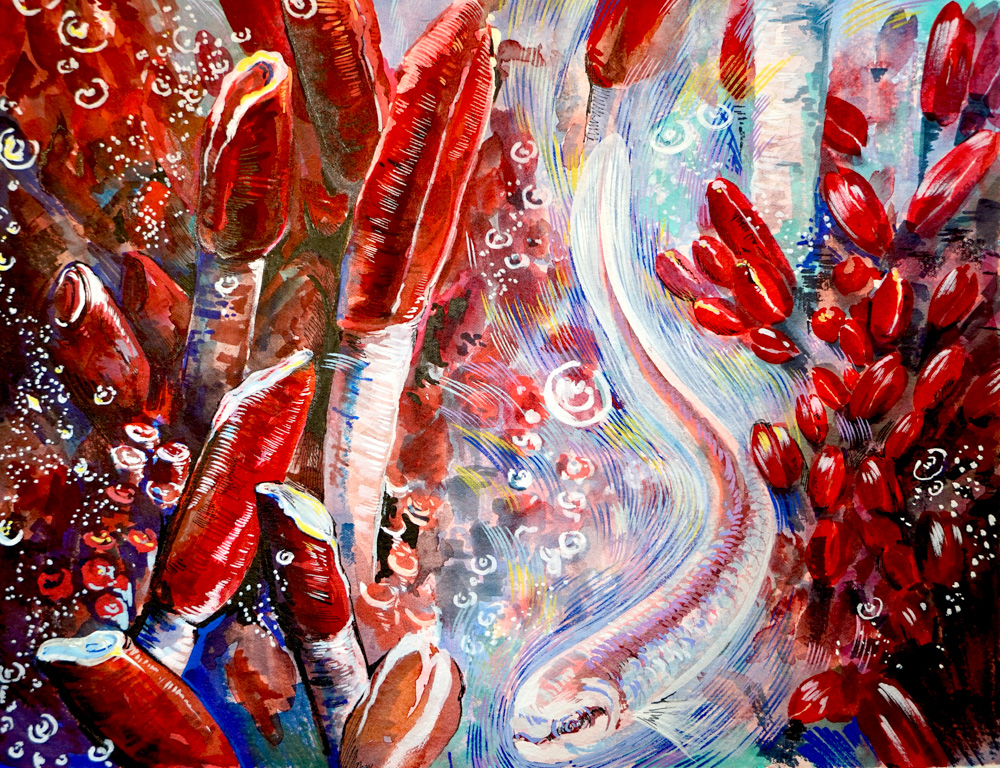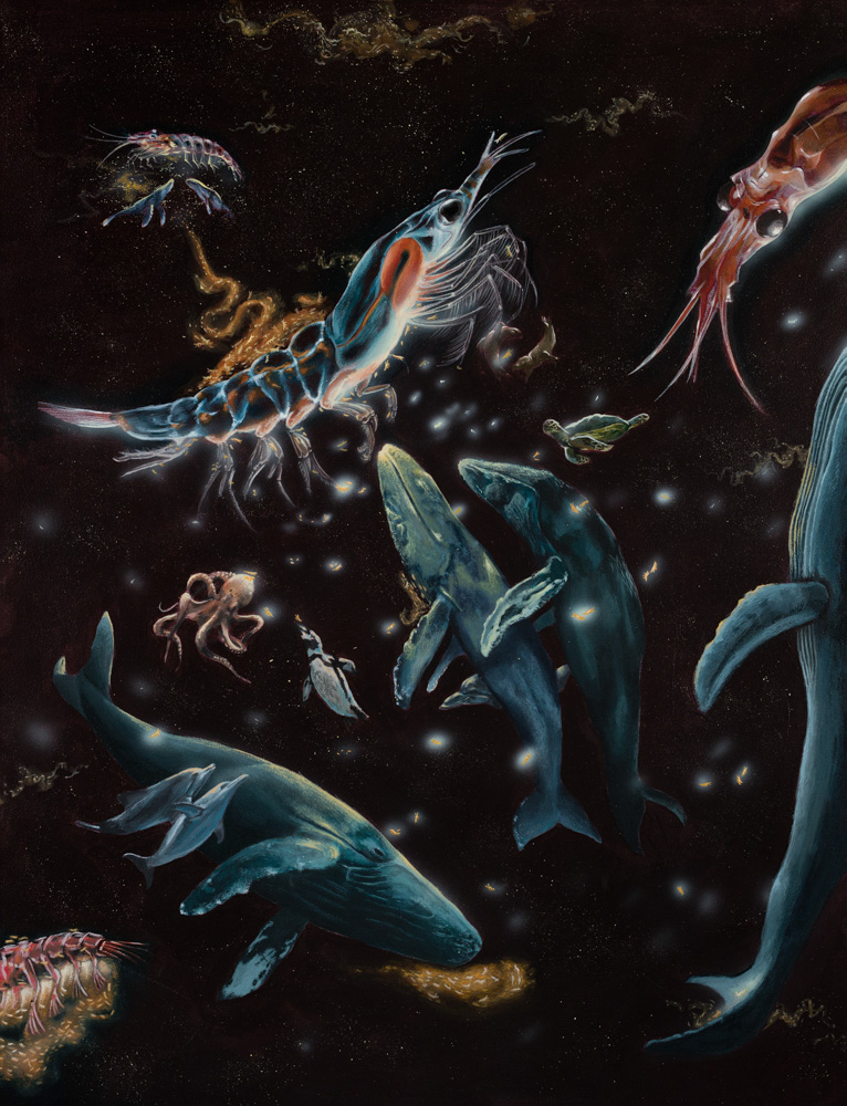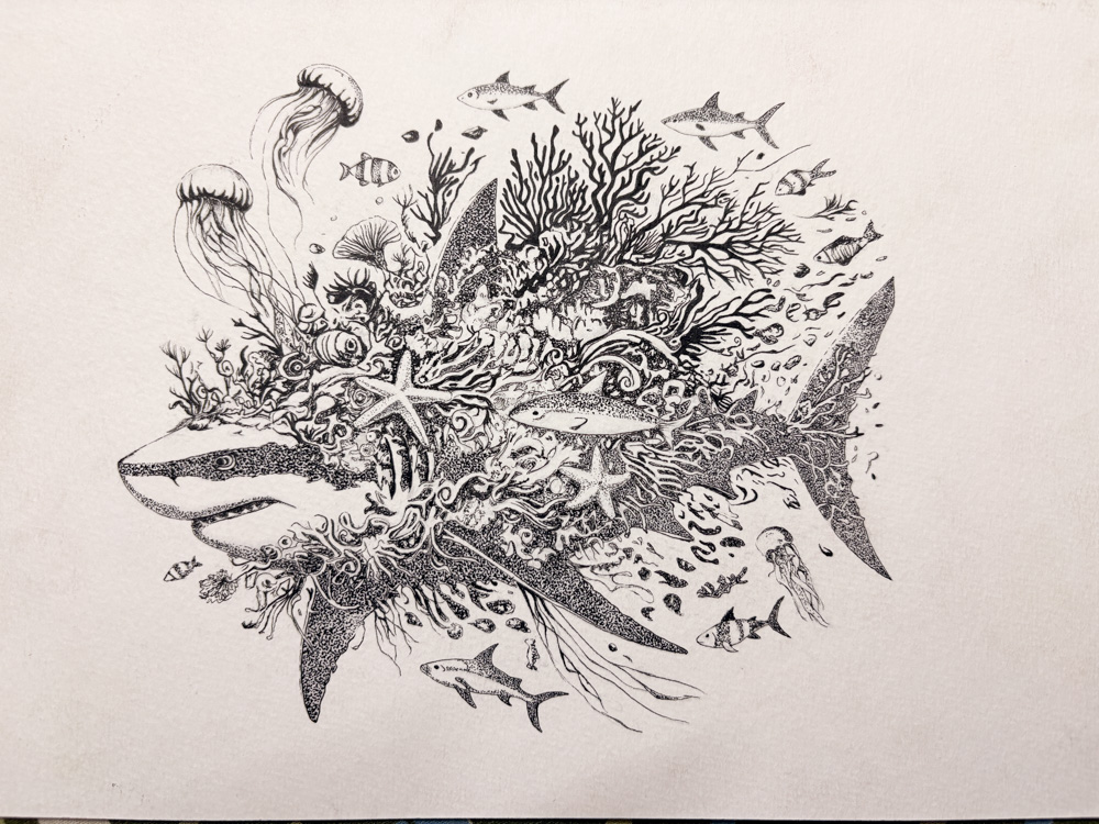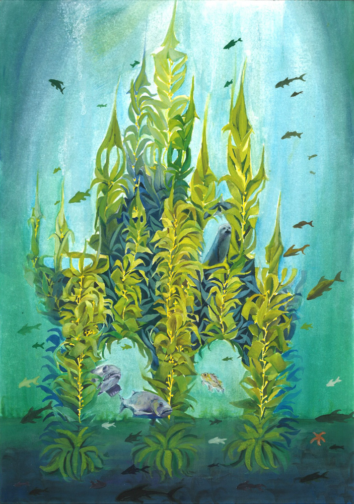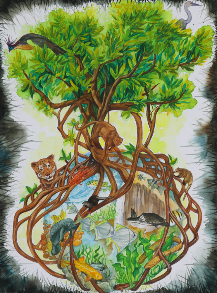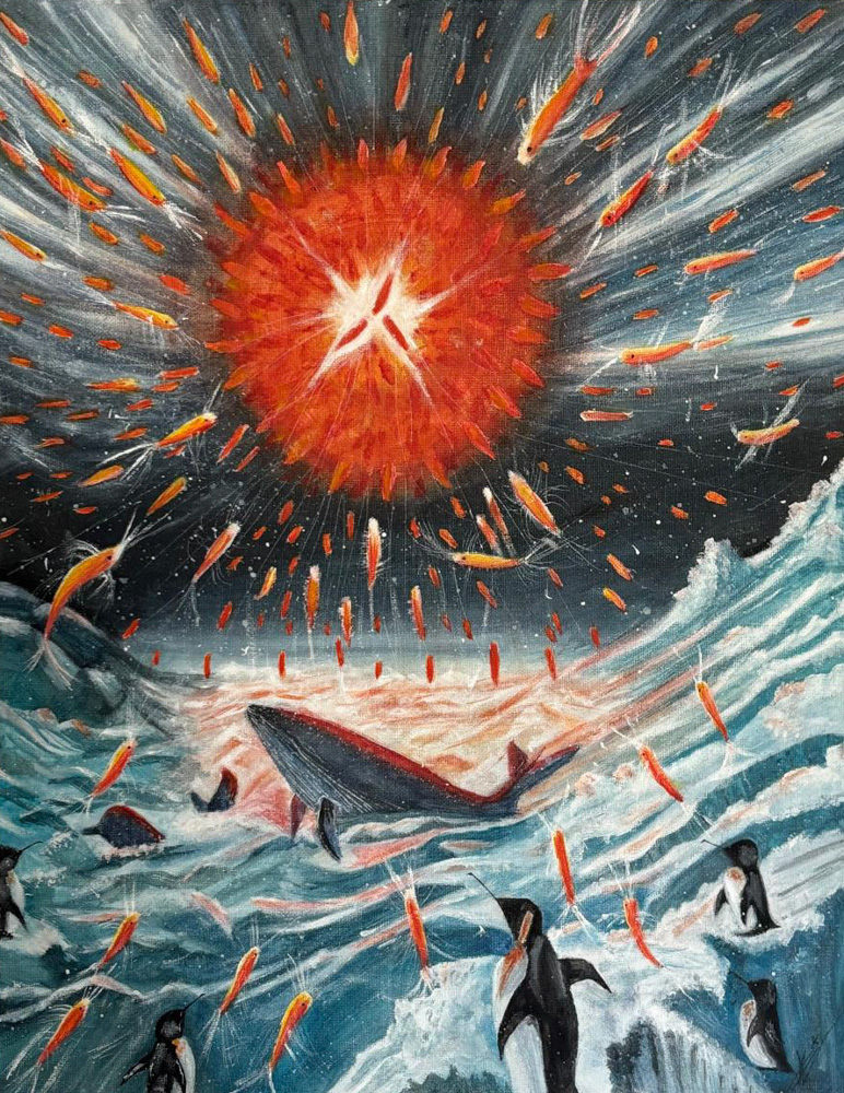 With over 600 entries in this category, selecting the semi-finalists was no easy feat. Our judges carefully reviewed each piece before selecting 34 outstanding artworks from students representing 9 different countries. These young artists illustrated a remarkable variety of marine keystone species, including orcas, hydrothermal vent tube worms, sharks, krill, walrus, and giant clams. Their use of different artistic styles, techniques, and media brought these species to life.