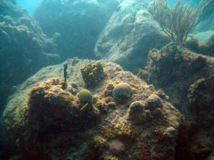 Our morning dives were located at Monkey Shoals, a submerged bank that lies about 3 miles offshore between St. Kitts and Nevis and west of the Narrows. The reef structure is reminiscent of a Pacific atoll, without the typical emergent