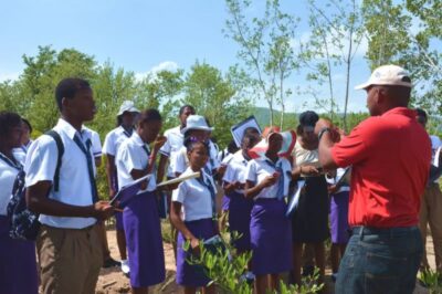 Today, we returned to Holland High School to continue instructing students about the mangrove food web. We took students outside to participate in a hands-on food web activity. Each student received a different mangrove organism that they were to represent.
