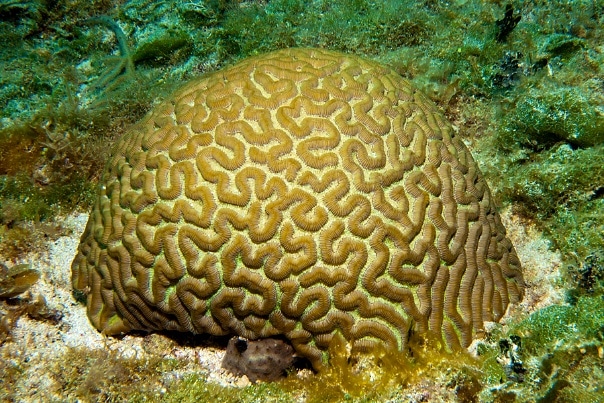 This is a Siderastrea coral. The size is just a little bit bigger than a grapefruit – not very big at all. The difficult thing with cameras, especially underwater, is that you don’t get a sense of scale. That’s why when we do scientific research, we always put a ruler or a meter-stick in the frame for reference. For pretty photos it kind of mucks it up, but for scientific photos, it’s a necessity.