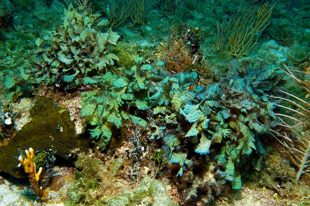This is a big clump of algae – a fairly pretty algae – called Stypopodium. It’s kind of papery thin with little dark lines that run across it. I’m including this photo just to show everyone some of the large amounts of macroalgae we’re seeing down here on the bank.