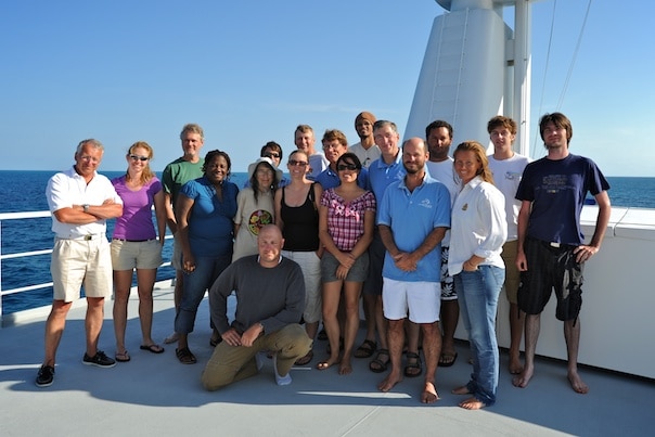 Before leaving our second anchorage at Damas Cays for Freeport, the expedition team gathered on the bridge deck to take a quick group photo. A couple of marine scientists would be returning to shore once we arrived, and we were sad to see them go. Many thanks to Leno Davis, Lindy Knowles, Indira Brown, Alex Henderson and Dr. Skinner for their work on the first leg of our journey!