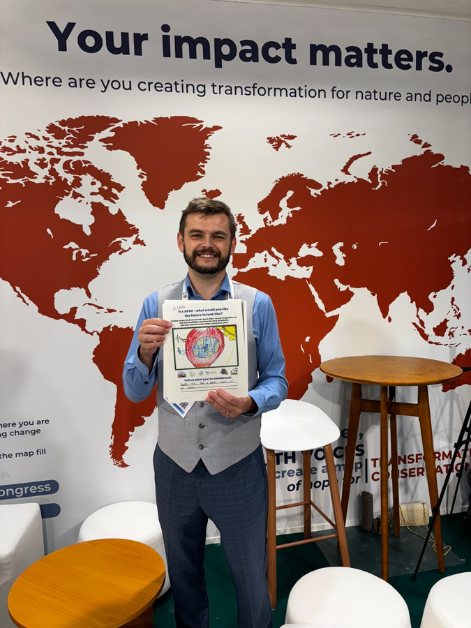 Winning artwork held up at IUCN’s World Conservation Congress. Image courtesy of Exploring by the Seat of Your Pants.