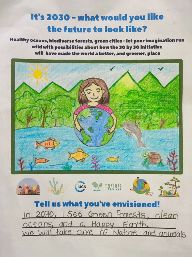 A highlight of our involvement was co-sponsoring the #NatureForAll 30 x 30 Youth Art Contest, organized in collaboration with IUCN #NatureForAll, the Bow Seat, and Exploring by the Seat of Your Pants. Open to students ages 5–19 worldwide, the contest celebrated young people’s creativity and their vision for a sustainable future. More than 360 students from North America, Asia, Europe, Africa, and Central America submitted their artwork—each piece reflecting a unique connection to the natural world. We were thrilled that selected student artwork was exhibited at the World Conservation Congress, providing a vivid and inspiring reminder of the power of youth voices in shaping a sustainable future.
