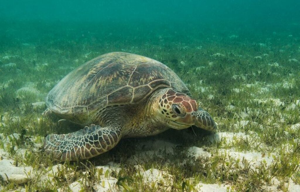 Sea turtle in seagrass, Australia by Jayne Jenkins. [CC BY 4.0 (https://creativecommons.org/licenses/by/4.0/)], downloaded 17 Jan 2025 via The Ocean Agency: Ocean Image Bank (no upload date given). https://www.theoceanagency.org/search-result?img=YUI3BxIAACIAOZDR