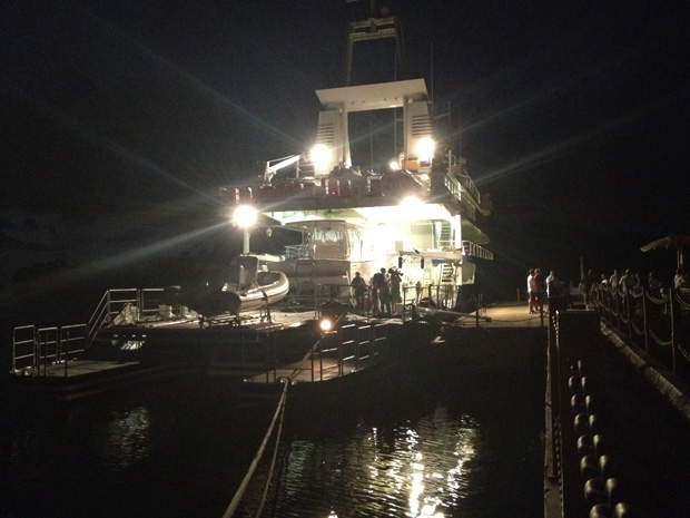 Everything went well on the afternoon dive, but tonight’s weather forecast isn’t promising: 25-knot winds and six-foot seas for the next five days. Just one-meter swells made it tough to get in and out of the Calcutta this afternoon. We’re keeping our fingers crossed that the weather holds.