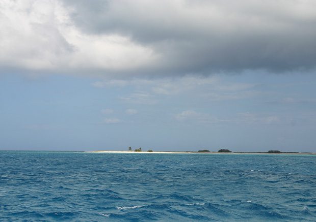 Now we’re anchored off Southwest Cay, a.k.a. Bird Cay, one of four small, mostly empty islets that together cover a tenth of a square mile. It’s a strip of sand with a few bushes and palm trees and a long, low pile of what looks like bleached coral but is actually empty conch shells discarded by fishermen over the decades. Just beyond it is Middle Cay, one of two inhabited islets, with a Jamaican Coast Guard station, a research station built by The Nature Conservancy, and a scattering of fishing huts.