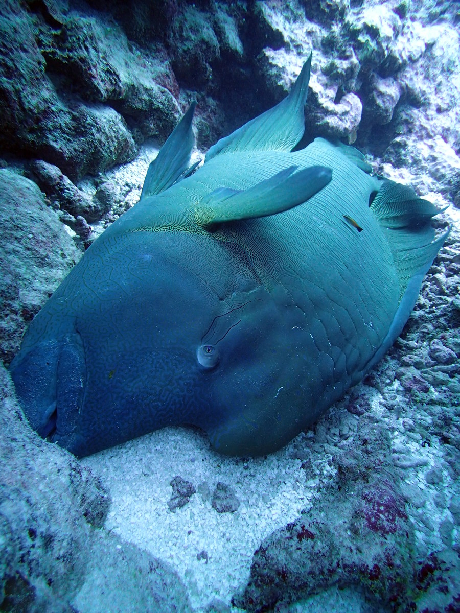 Aitutaki island has been identified as a KBA. Marine species that trigger Aitutaki’s KBA status are the endangered Humphead Wrasse (Cheilinus undulatus) and Green Turtle (Chelonia mydas). Palmerston has also been identified as a KBA due to the Humphead Wrasse, Green Turtle, Loggerhead Turtle (Caretta caretta) and Big Eye Tuna (Thunnus obesus). During our time in Aitutaki, 17 Humphead Wrasse have so far been found at seven dive sites. On one dive, a Humphead Wrasse was found lying on its side getting cleaned by two cleaner wrasse (Labroides dimidiatus). It will be interesting to see what Palmerston has in store.
