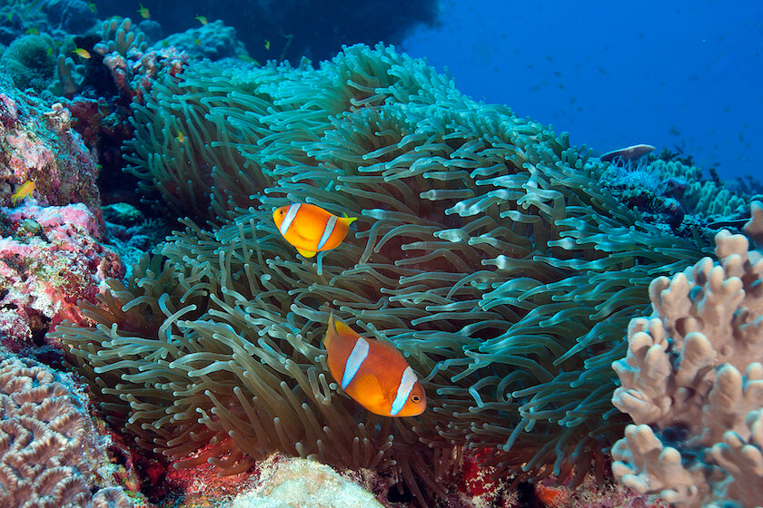 Two-banded Anemonefish (Amphiprion bicinctus). -