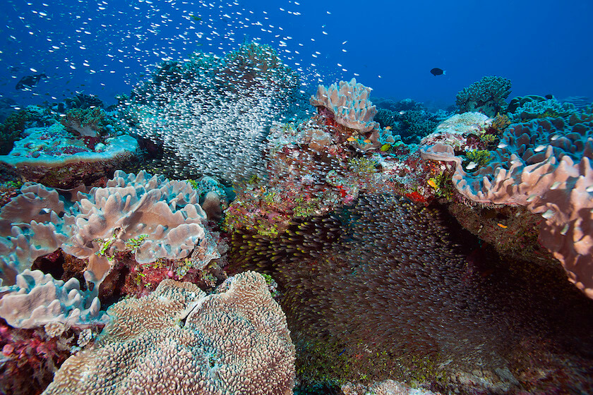 What they found during the research mission were reefs with a stunning diversity of coral and an abundance of fish. Of all of the reefs surveyed on the Global Reef Expedition—the largest coral reef survey and mapping expedition in history—the reefs of the Chagos Archipelago were some of the most diverse and had some of the highest coral cover and fish biomass. They also had more fish per square meter than in any country studied on the GRE.
