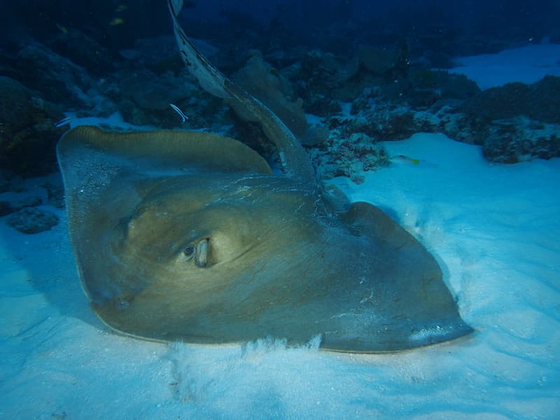 There are three families of rays found in BIOT: Dasyatidae, Myliobatidae and Mobulidae. Reefs here contain approximately eight ray species: