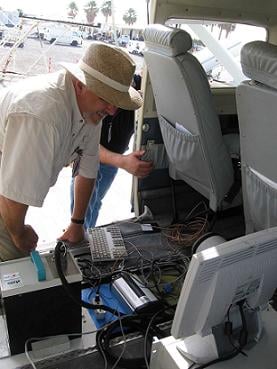 Upon arrival in Saudi Arabia, the equipment for CASI surveys was transported directly to the Golden Eye aircraft; it was then installed by Jeff and Herb. Upon completion of the installation the entire system was tested on the ground and found to be fully operational. The installation started at 0730 hrs and was completed by 0930 hrs; considering the delicate nature of the equipment and the distance it had traveled, this was a very efficient set-up.