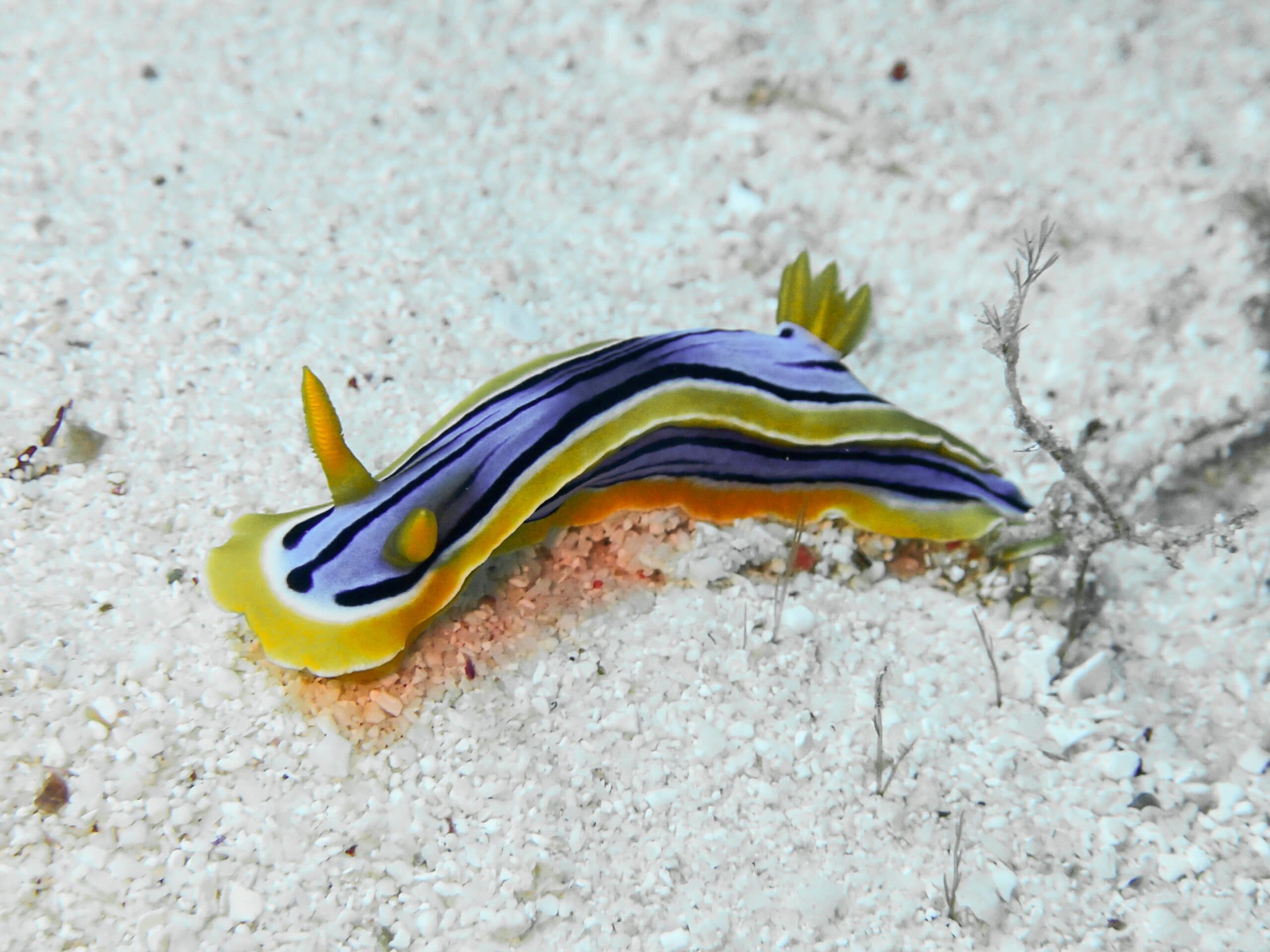 As a coral surveyor, it often happens that I can while away an hour-long dive almost thoroughly upside down, my face only inches away from the substrate as I count and measure colonies. This means I often miss the ‘big stuff’ going on around me, and, at the end of my dive, it’s not surprising when other divers regale me with stories of huge schools of trevallies or turtle encounters – some of which occur only metres away from my blissfully unaware self. That said, down in the coral, I often find far more interesting creatures roaming about – the best of which, I believe, is the little nudibranch.