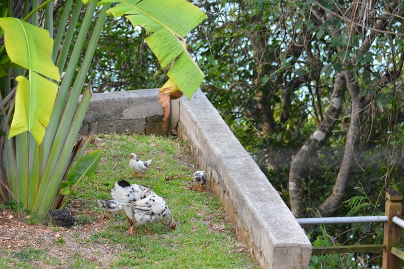 This momma chicken was a fierce defender of her chicks – despite our fear after some of the feral cat sounds at night, she had five beautiful chicks everyday. It was impossible to get a picture of them all, as she would herd them away any time we tried to get close. Oh, and more piggies!