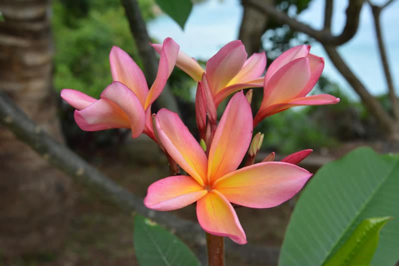 Tropical islands seem to be full of plumeria (left) and hibiscus (right).