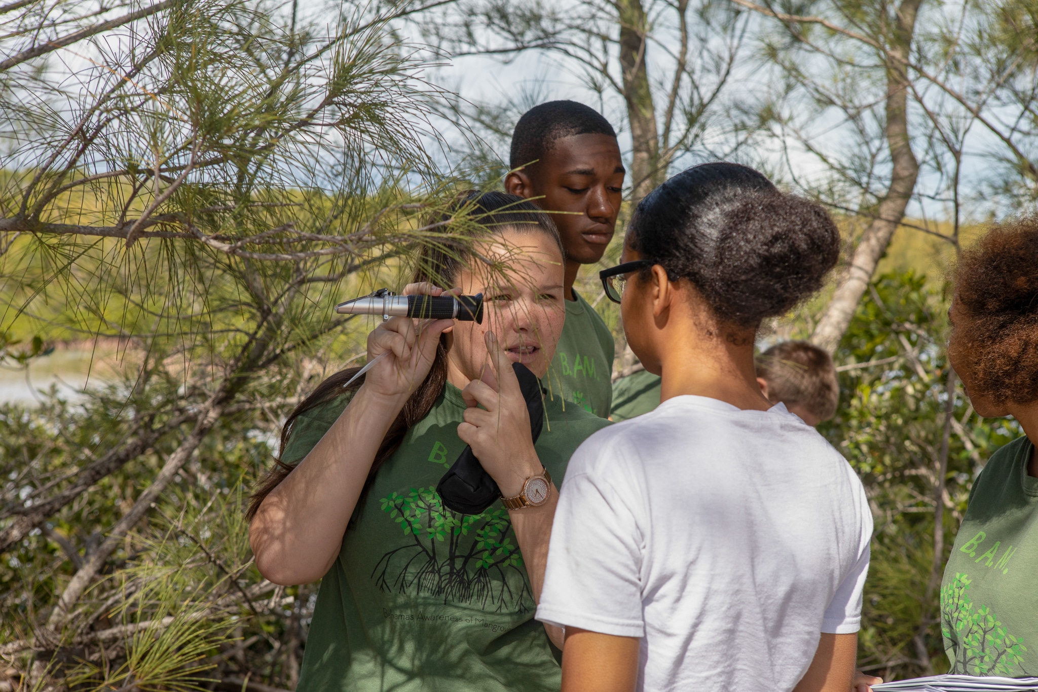 Students participating in year-two of our Bahamas Awareness of Mangroves (B.A.M.) and Jamaican Awareness of Mangroves in Nature (J.A.M.I.N.) programs have been monitoring mangroves throughout the academic year. Recently, they returned to their monitoring sites to collect additional data for the final time. The overall objective is for the students to use the data that they collected to determine what is happening in the mangroves. A more specific objective is to have the students look at water quality. They may ask questions such as: Are the mangroves experiencing different salinities during various seasons? Does this cause any change(s) in the mangroves? Why does one quadrat have more dissolved oxygen in it then another quadrat? How does this affect marine life in the mangroves?