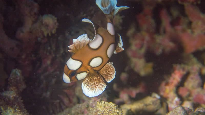 Juvenile sweetlips generally look quite different from the adults, and often live solitary lives on shallower reef sections. During our fish surveys on the house reef of Gili Lankanfushi here in the Maldives, this particular individual caught our attention.