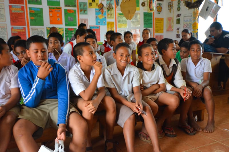 Students at Government Primary School Neiafu (left) and Mizpah Adventist High School (right) taking pre-assessment survey.
